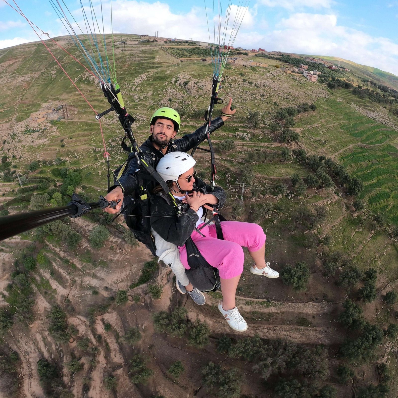 After that, take off from the Aguergour Mountains and soar high above the desert and Atlas landscapes with a certified professional pilot.