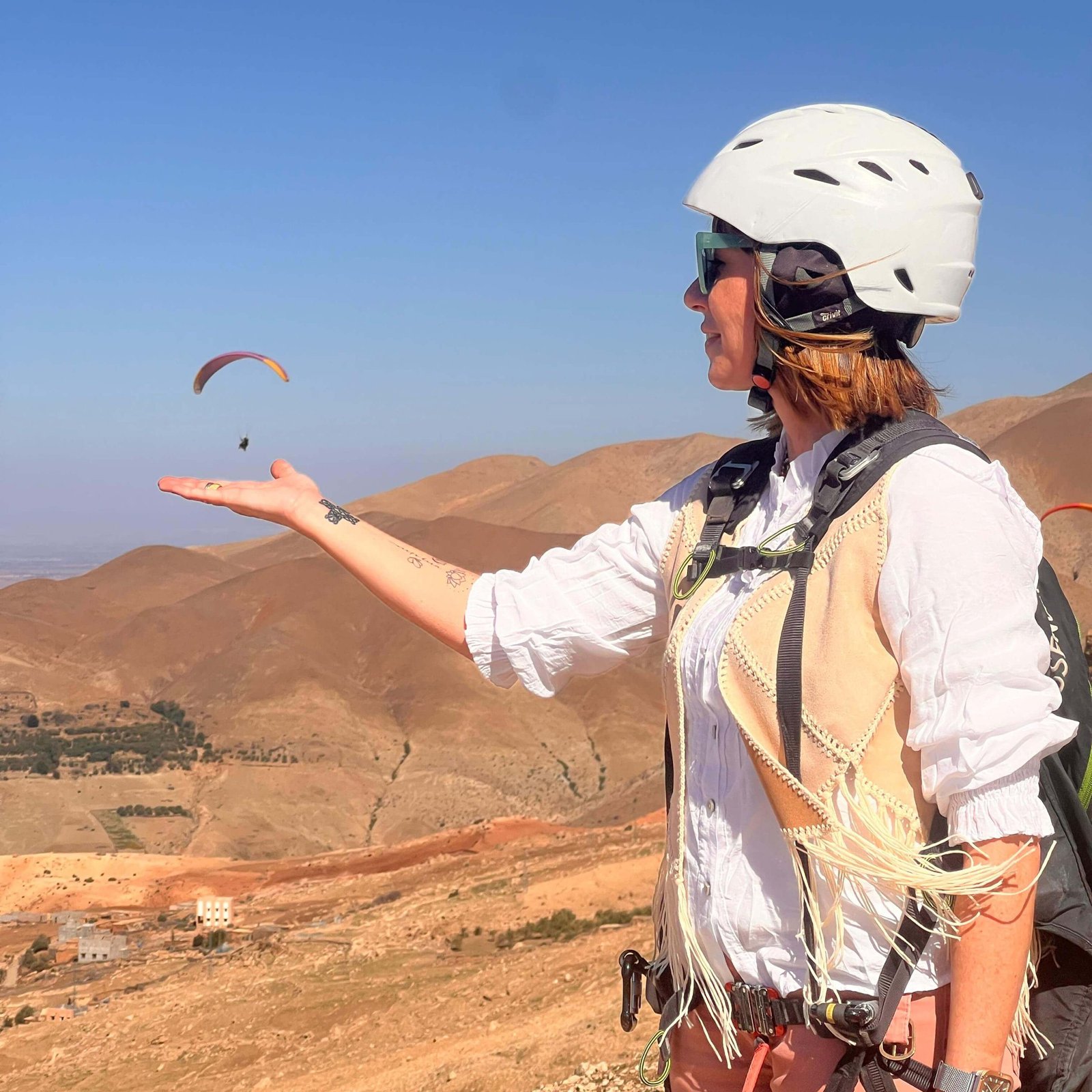 Included: hotel pickup & drop‑off from Marrakech, paragliding gear & pilot, ~20‑minute flight, GoPro video of the flight, a 15‑minute camel ride, Berber breakfast & tea.