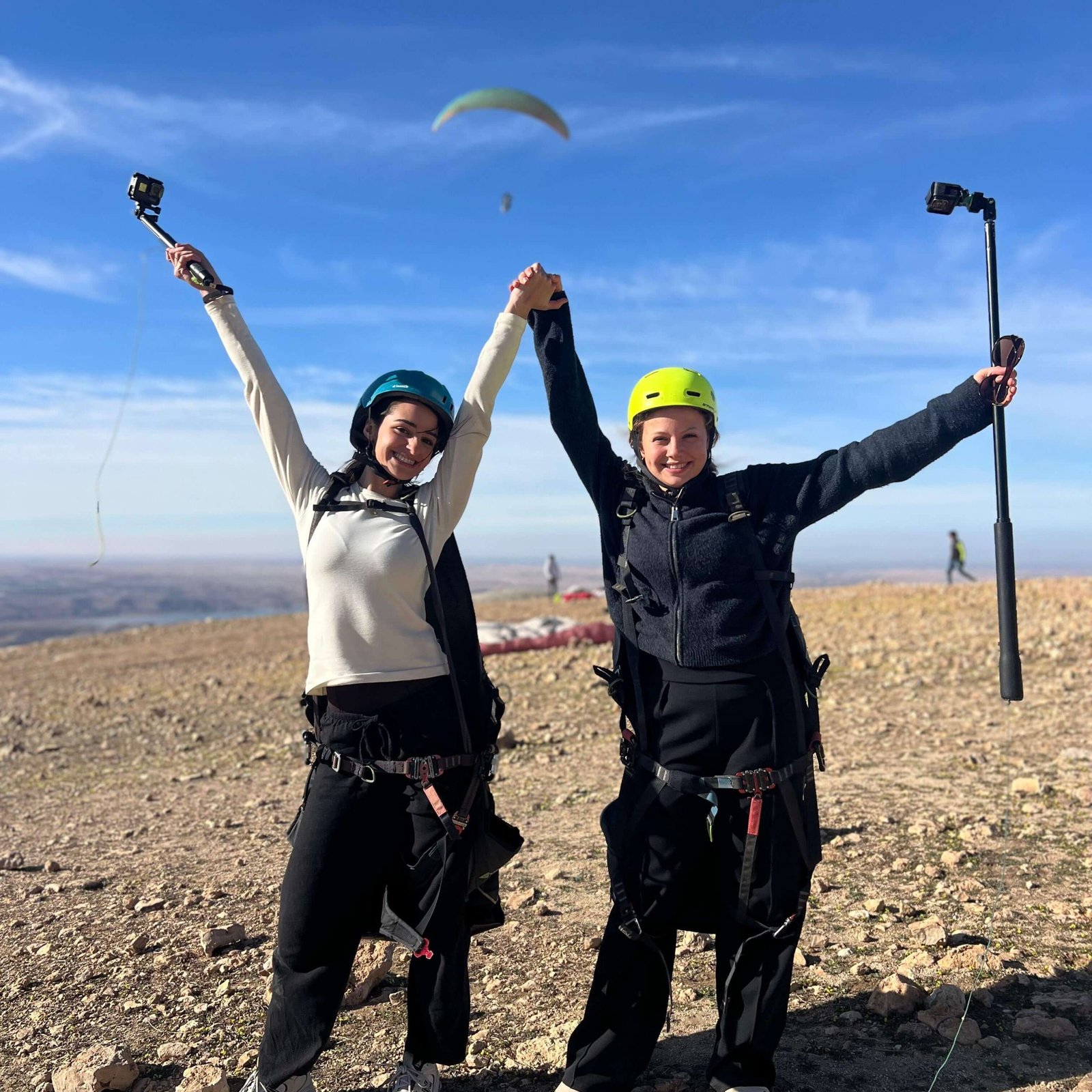 At the Kik Plateau area, strap in with a certified pilot for a ~20‑minute paragliding flight, capturing aerial views and recorded via GoPro video.